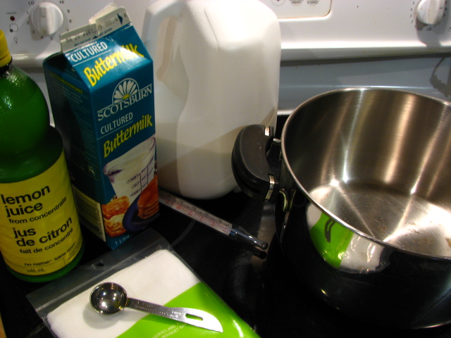 Measure out your ingredients and get your cheesecloth in colander ready. Will you make 1 batch? A double batch or a quad?