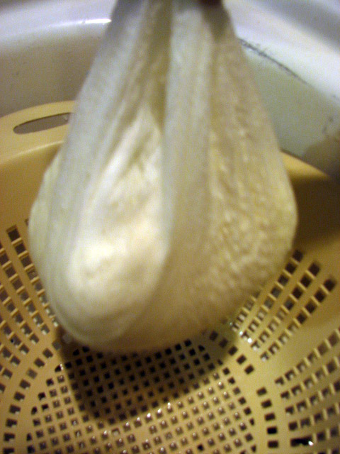 Yuck! The whey looks like yellow water. The curds are the white chunks.
